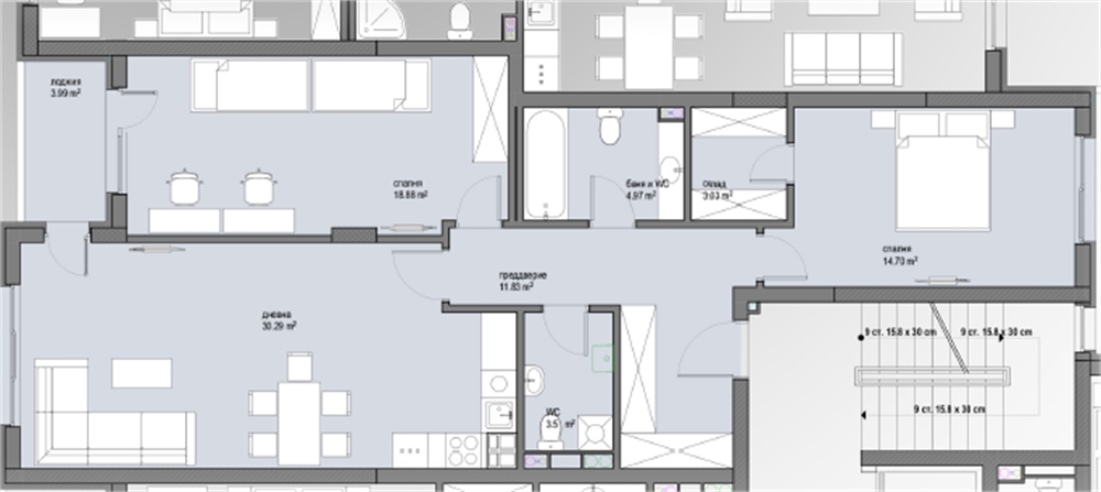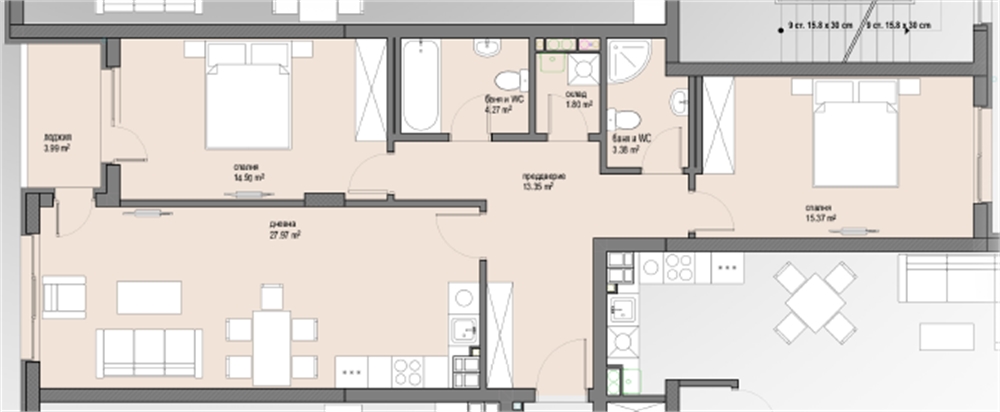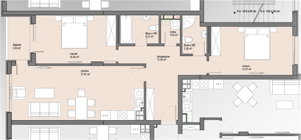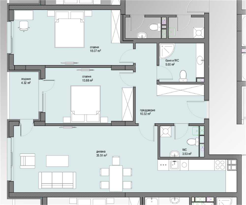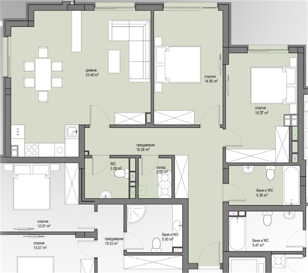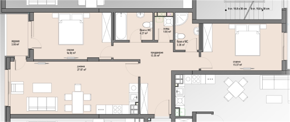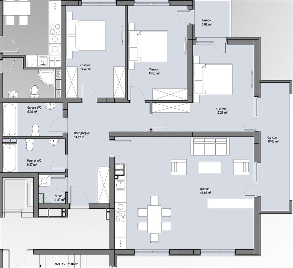 СХЕМА НА ПЛАЩАНЕ - 5000 Евро резервационен депозит и 100% плащане на акт 16 - най-добрата схема на плащане на пазара на имоти. Прекрасна сграда на етап груб строеж - Акт 15 се очаква до края на месец май 2025г. Вградена подова допълнителна топло- и шумоизолация, водно подово отопление с висок клас термопомпена система Loria Duo на Atlantic за всички три- и четиристайни жилища, луксозна окачена фасада. Енергийната ефективност е гарантирана както от отличната изолация и материали, така и от дограмата с троен стъклопакет със специални нискоемисионни стъкла, видеодомофонна система - енергиен сертификат клас "А". Естествен камък в общите части, по стените – мазилка „Zephyro“. Жилищата са изключително функционални, уютни и добре организирани като пространство, като се издават на шпакловка и замазка, с монтирани ключове и контакти, с радиатори и блиндирани външни врати. Околоблоковото пространство е изключително просторно, проектиран е детски кът и прекрасен озеленен двор, с автономна сензорна поливна система. Без посредници. Директно от инвеститор. Преференциални условия на кредитиране за клиенти на дружеството от Пощенска банка, ДСК и Уникредит Булбанк. За повече информация и свободни апартаменти на www.vaklingroup.bg или на тел.0884180451